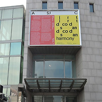 뒤로 보이는 벽화에는 텍스트 아트도 되고요 시간을 알려주는 숫자도 나오고 플랫트폼-엘 컨템포러리 아트센터 라는 단어도 보이고요 변화무쌍하다 디자인 감각도 뛰어나고 첨단 디지털 기술도 결합된 작품이다