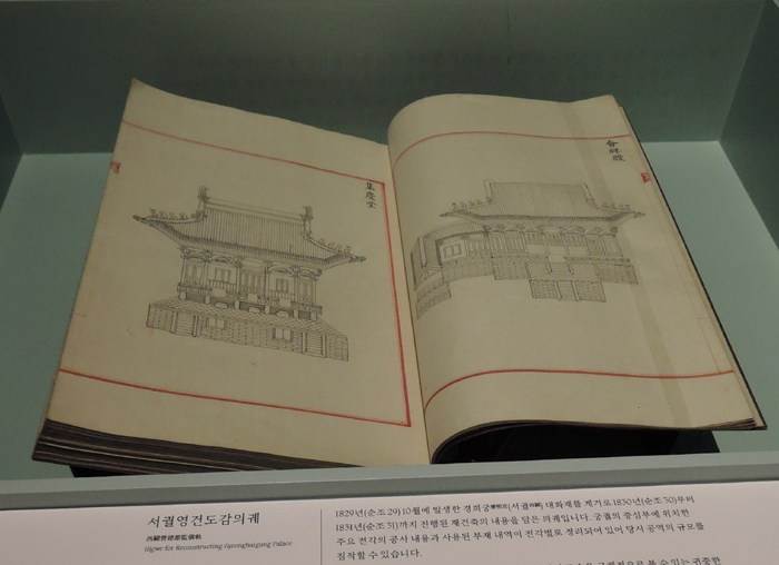 지금 남아있는 영건의궤는 특별한 건물이거나 규모가 매우 큰 공사를 기록한 것입니다. 예를 들면 숙종肅宗(재위 1674~1720) 때에 전반적으로 수리하고, 순조純祖(재위 1800~1834) 때에 대대적으로 재건축한 경희궁慶熙宮 같은 경우입니다. 당시의 의궤를 펼쳐보면 공사 배경부터 건물별 수리 내용, 사용한 자재의 종류와 수량, 공사에 참여한 장인匠人의 이름과 지급받은 품삯까지 조선시대 궁궐 건축의 모든 과정을 상세하게 볼 수 있습니다. 새로 지은 건물의 정면 모습을 그린 그림도 있습니다. 조선시대 궁궐건축 문화를 생생하게 접할 수 있는 매우 귀중한 자료입니다.