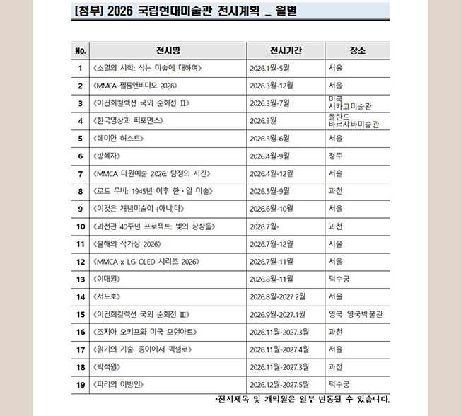 [국립현대미술관] 2026년 전시계획 및 주요사업 공개