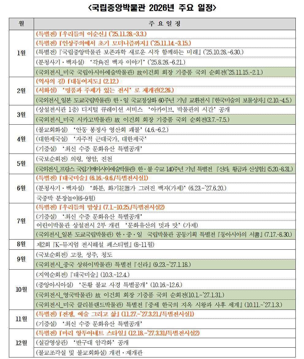 온 국민이 가장 선호하는 문화 향유 공간인 국립중앙박물관 2026년 주요 일정 <작성 중>
