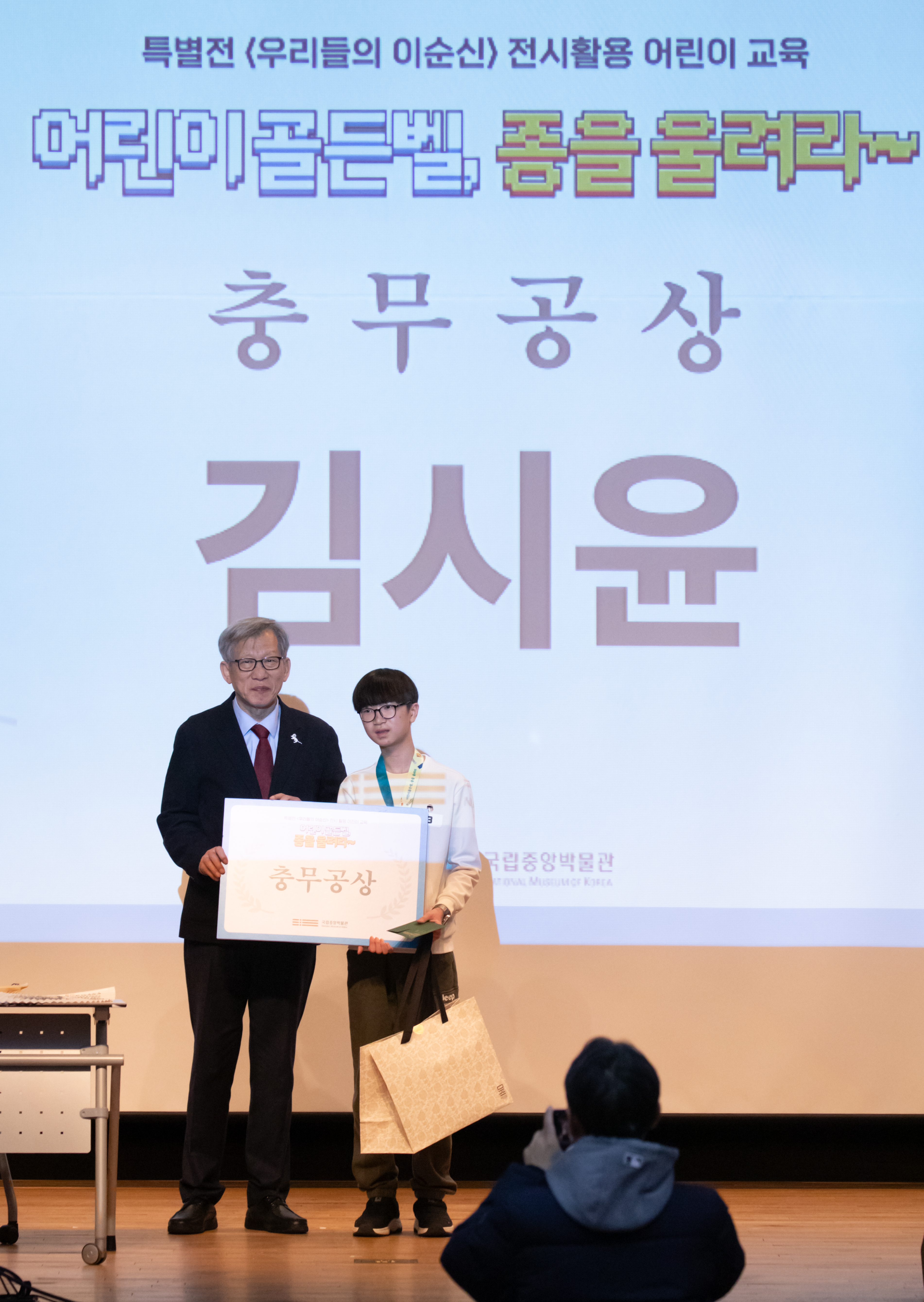 시상식 후에는 국립중앙박물관 유홍준 관장이 직접 ‘어린이를 위한 이순신 이야기’를 들려주며 행사의 대미를 장식했다. 유홍준 관장은 “국립중앙박물관이 많은 사랑을 받는 이유는 어린이들이 박물관 교육 프로그램에 적극적으로 참여해 주고 있기 때문”이라며, “앞으로도 삶 속에서 즐길 수 있는 박물관이 될 수 있도록 노력하겠으니 많은 참여와 관심을 바란다”고 전해 어린이들에게 깊은 울림을 주는 메시지를 남겼다.