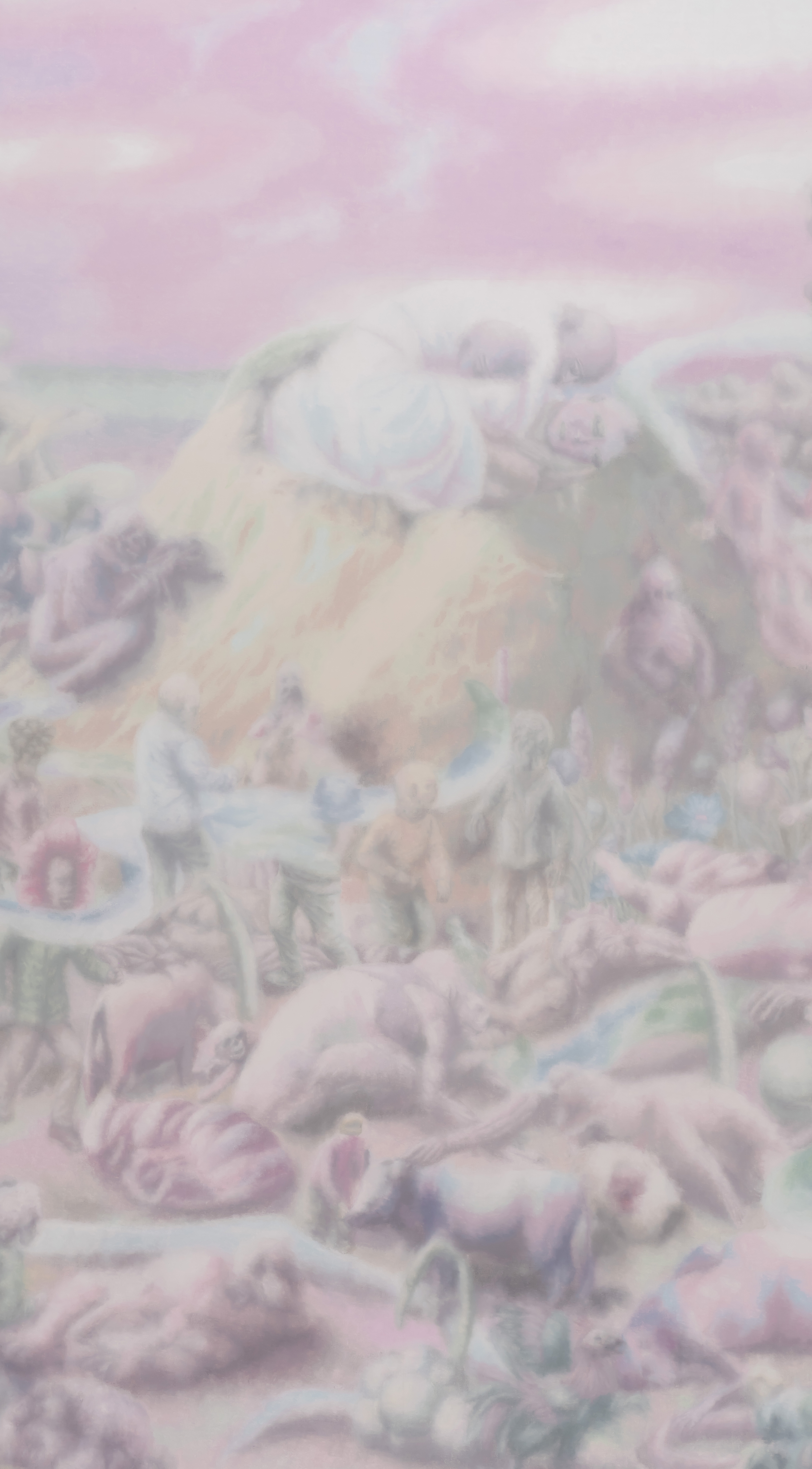 케이 이마즈(Kei Imazu, 1980년생, 일본 출생, 인도네시아 거주)는 회화, 설치, 조각 등 다양한 매체를 통해 디지털 시대의 시각적 과잉 속에서 이미지, 역사, 신화가 어떻게 재구성되는지를 탐구한다. 작가는 서로 다른 출처에서 비롯된 이미지의 단편을 수집해 병치하고 중첩함으로써, 하나의 장면이 단일한 의미로 닫히기보다 복수의 시간과 서사를 동시에 품도록 화면을 조직한다. 그 결과 그의 작업에서 역사는 사건의 직선적 서술이 아니라, 여러 층위로 침전된 기억이 현재의 감각과 맞닿는 상태로 제시된다. 신화나 민담의 도상 또한 순수한 이상이 아닌 동시대의 조건 속에서 새롭게 읽히고 충돌하는 이미지로 작동한다. 작가는 최근 인도네시아 자카르타에 위치한 MACAN 미술관에서 대규모 개인전 《The Sea is Barely Wrinkled》(2025)를 선보였으며, 이외에도 태국 방콕 아트 비엔날레(2024), 독일 카셀에서 개최된 《도큐멘타 15》(2022), 일본 모리미술관(2019), 요코하마 미술관(2019) 등 유수의 단체전에 참여했다.