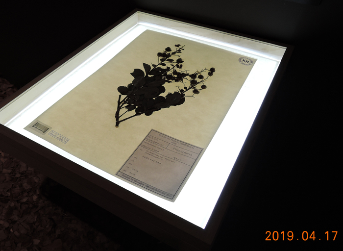 소쇄원에서 수집된 식물표본을 보여주다 배롱나무, 매실나무, 벽오동, 국화, 치자나무, 대나무, 연꽃을 선보인다.