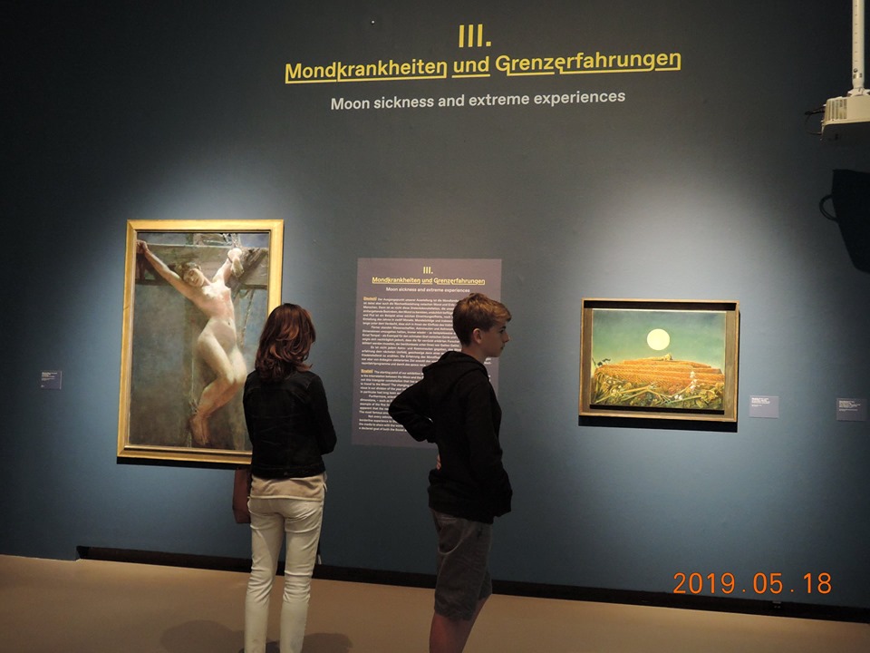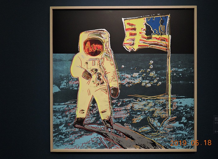 그 큐레이터도 백남준 이야기가 나오니까 그에 대한 경력에 대해 훤했다. 1991년 백남준이 이 미술관에서 전시를 한 적이 있다는 말도 전했다 르네 마그리트가 그린 초현실주의 풍의 달 그림이 우리에게는 쉽게 와 닿는다. 첫번째 작품은 앤디워홀의 것이다 한국화가 중 한묵은 1969년 인류가 달에 도착했다는 소식을 듣고 쇼코를 받아 3년간 작업을 못하고 칩거에 들어갔다