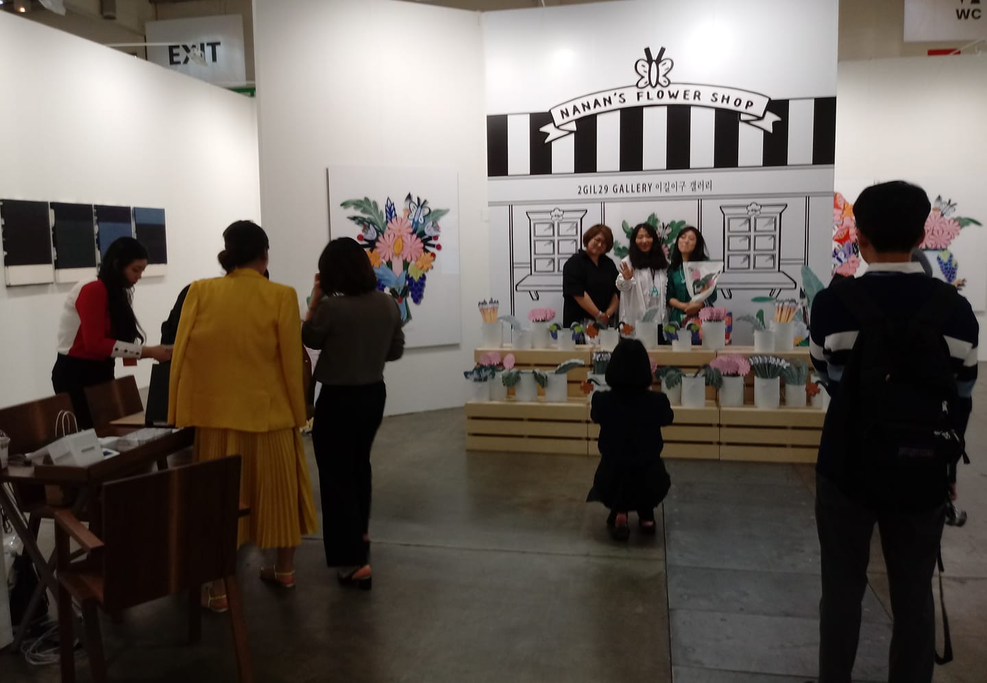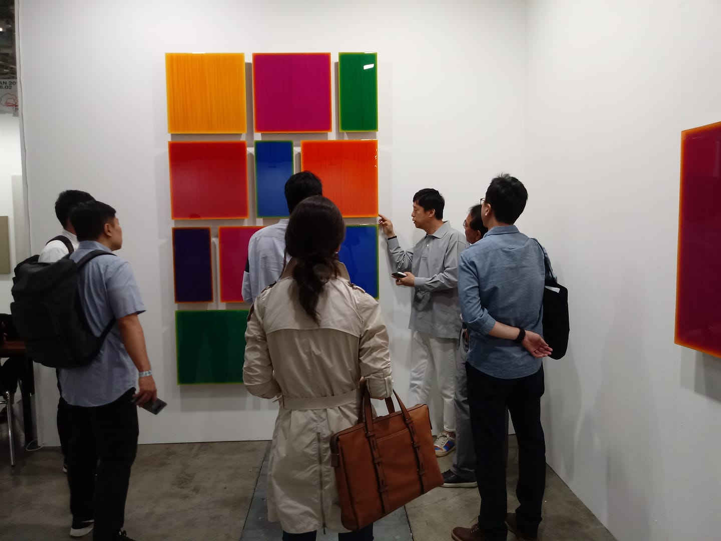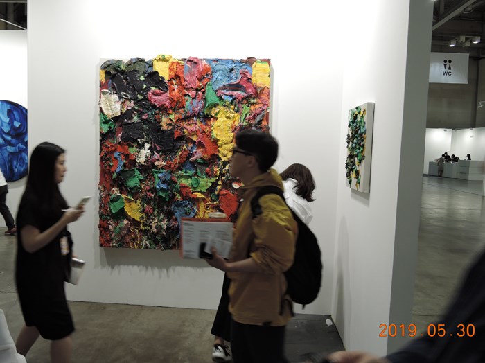 아트부산 부스와 공간 미술설치에서 여유있는 공간 속 품위있고 작품 설치는 조용한 가운데 관객과 전시장과 작품이 잘 호응하면서 조급한 마음을 덜어내고 제대로 작품을 감상할 수 있는 분위기를 연출하고 있다.