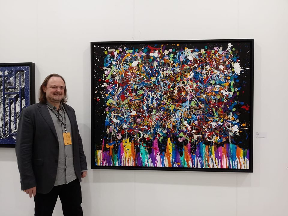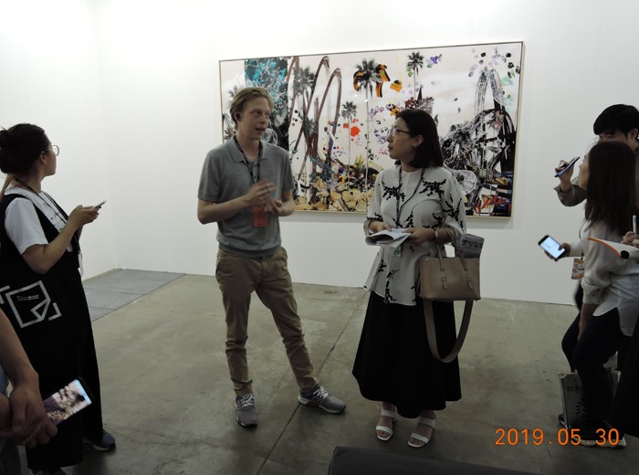 역시 독일에서 온 갤러리인데 뒤이 보이는 회화작품은 사람의 손이 들어가지 않는 디지털 붓으로 그린 그럼에도 그 표현력이 사람의 손으로 그린 보다 풍부한 작품이 탄생한다. 하이테크 출력의 기술도 대단하다.