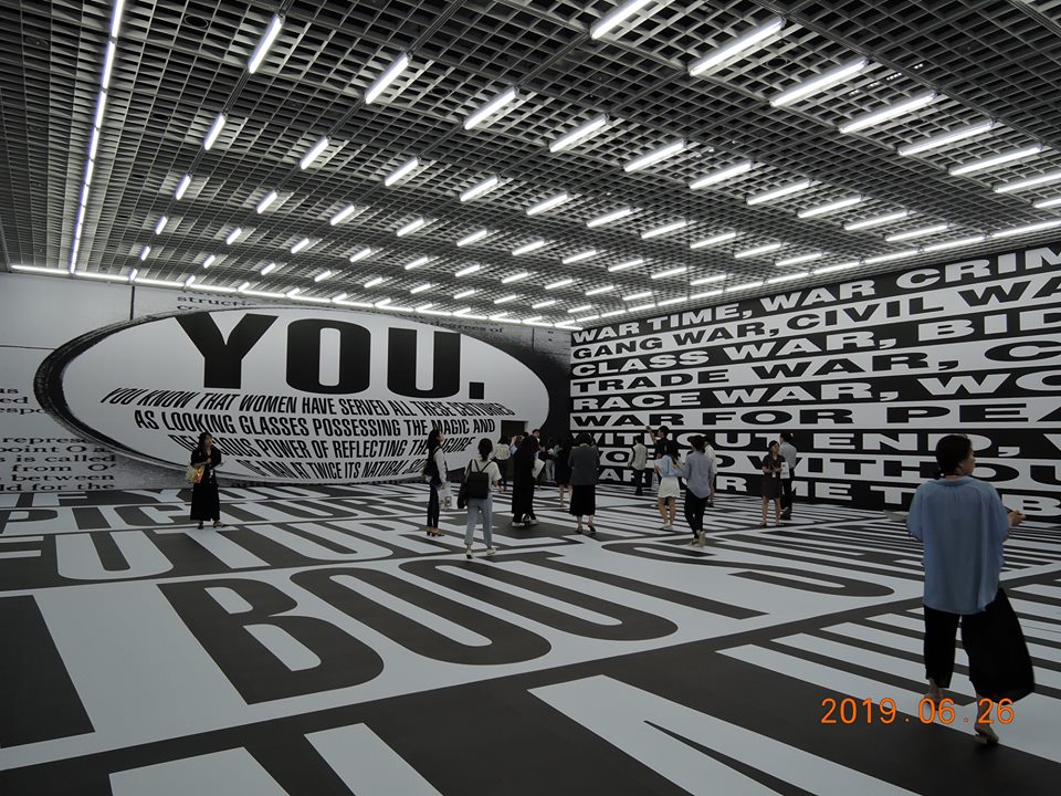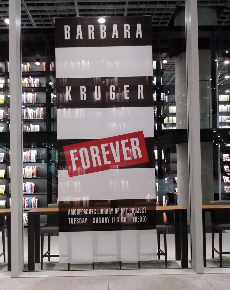 [아모레 퍼시픽 바바라 크루거전_포에버] . <2019.06.27-12.29일까지> 6개월 전시 아시아에서는 처음 바바라 크루거 전시가 열린다. 우리의 무뎌진 비판의식을 흔들어 깨워주는 작품이 많다. 예컨대 여기서는 반전 의식을 고무시켜주면서 과연 우리가 정말 인간답게 살아가고 있는지를 묻고 있다. 그런 길을 열어가고 있는지 의문을 던지다.