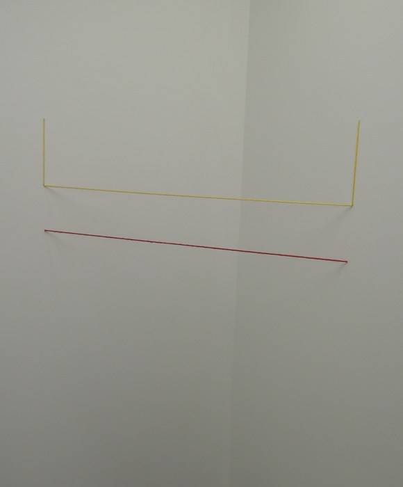이제 그의 작품을 좀 감상해 보자. 1968년 초기작도 코너를 활용했다. 이 작품은 멀리 보면 선처럼 보이는 데 가까이 가서 보면 정사면체다. 'ㅁ'자형으로 길게 연장되어 있다. 선의 윤곽은 뚜렷하다. 좌대에 작품을 올리는 기존 방식과는 180% 다르다. 기존 전시에서 강조하는 고귀함이나 숭고함을 생략하고 작품을 바닥에 놓아 관객 위주의 눈높이에 맞췄다.