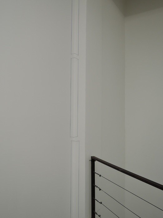 현대작품이 되려면 현장에서 사건이 일어나야 한다. 하찮게 볼 수도 있지만 여기서 흑백 사각형이 겹치면서 입체공간이 조각된다. 작가는 이에 대해 "한 줄의 실은 선 이상을 의미한다. 단순히 하나의 면을 이룰 뿐 아니라 그 경계선 밖의 모든 걸 규정한다"라고 설명한다. 데뷔하던 시절 아직 완성하지 않는 작품의 드로잉도 2층에 전시되고 있다.